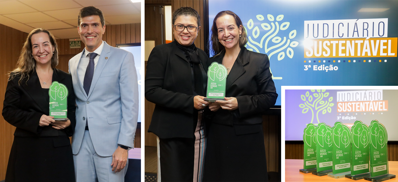 O Tribunal Regional Federal da 5ª Região - TRF5 recebeu, pela terceira vez, o Prêmio Juízo Verde, na categoria “Desempenho”, segmento Justiça Federal. A premiação foi concedida pelo Conselho Nacional de Justiça (CNJ) em reconhecimento à produtividade na prestação jurisdicional na área ambiental. Realizado pelo CNJ), o evento fez parte das comemorações da Semana do Meio Ambiente 2025 no Poder Judiciário. A juíza federal Cíntia Brunetta recebeu a premiação, em nome da Corte.
